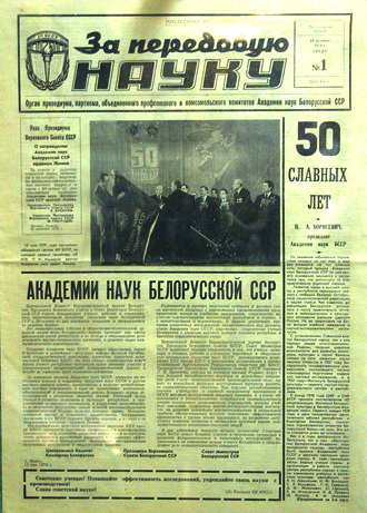В соответствии с постановлением директивных органов об издании с 1 июля 1979 многотиражной газеты АН БССР «За передовую науку» Госкомиздат БССР определил полиграфической базой для ее выпуска типографию им. Ф.Скорины. Однако в этой типографии для выпуска газеты не имелось необходимого оборудования, шрифтов, специалистов, а также производственных площадей. Руководство Академии в лице Президента АН БССР, академика Н.Борисевича и парткома В.Семенкова обратилось в ЦК компартии Беларуси с просьбой обязать специализированную типографию издательства ЦК КПБ выпускать многотиражную газету АН БССР «За передовую науку», поскольку аналогичные газеты Белгосуниверситета, Белорусского политехнического и Минского медицинского институтов и другие уже выходили на базе этой типографии. Вопрос был решен положительно.